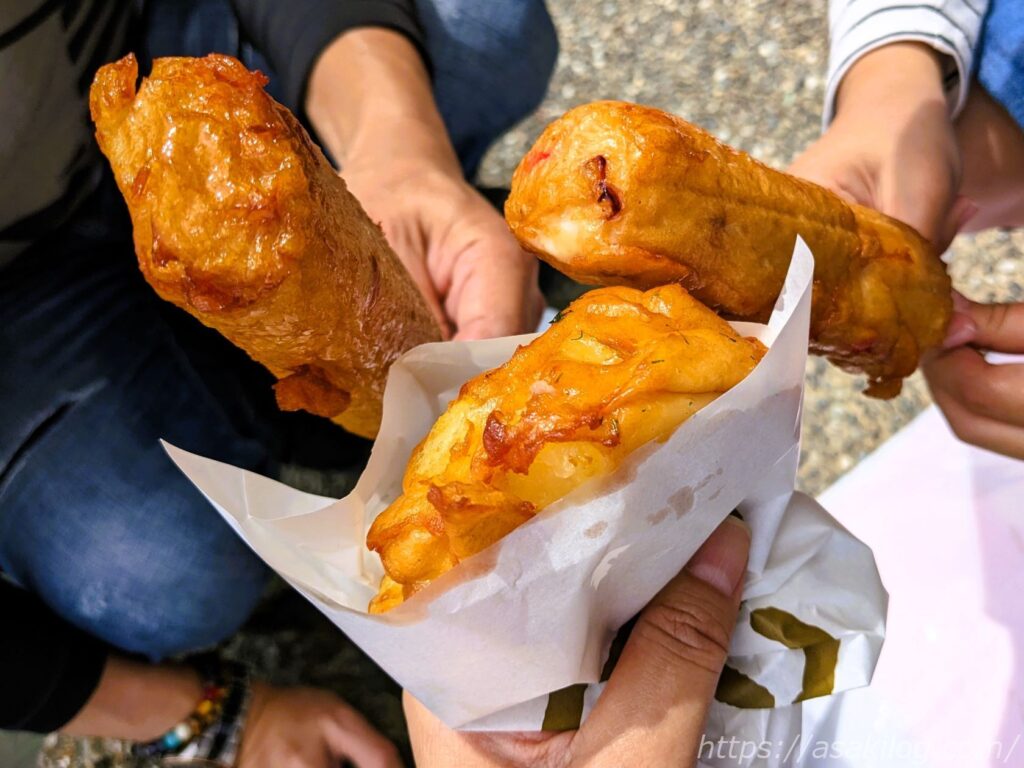 そして「磯揚げ まる天 伊勢神宮 内宮前店」では、たこ棒・チーズ棒・じゃがバター天を1つずつ購入(合計1,100円)。私が食べたじゃがバター天は、ほくほく温かくて食べ応えがあった~。ちょっと小腹を満たすのにおすすめです。