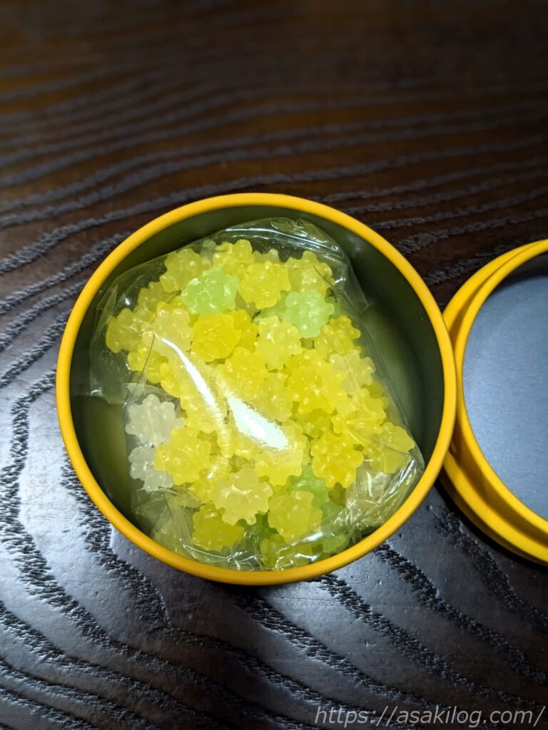 こちら鳥羽水族館オリジナルマークの黄色い缶の中身は「金平糖」でした。ジュゴンのデザインが可愛いので、食べ終わった後も何かと便利に使えそう!