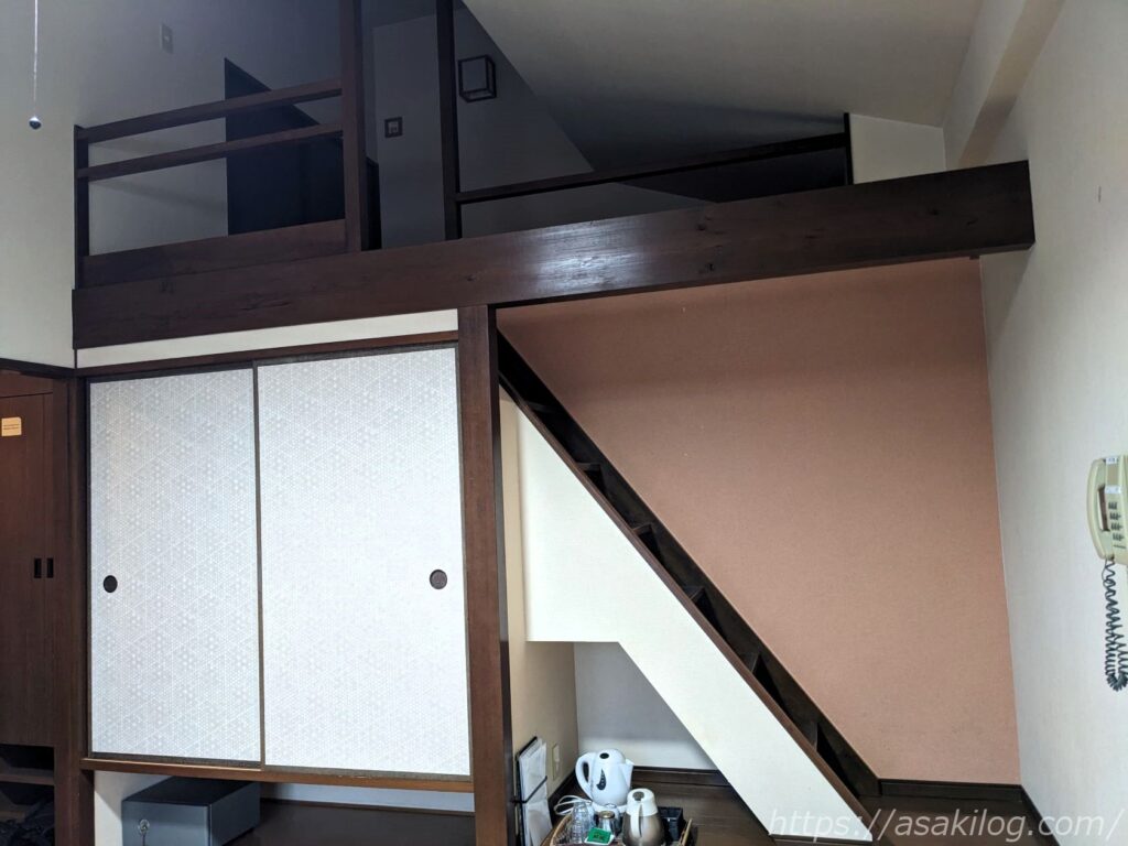 岬のお部屋には、ロフトが付いています。ちょっとした荷物を置いたりするのに便利ですね。