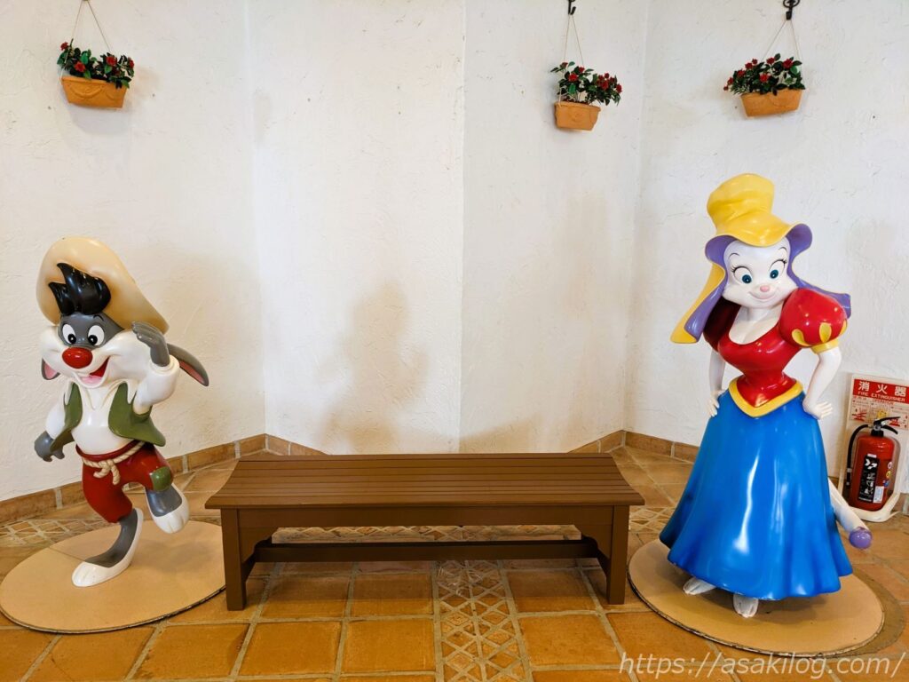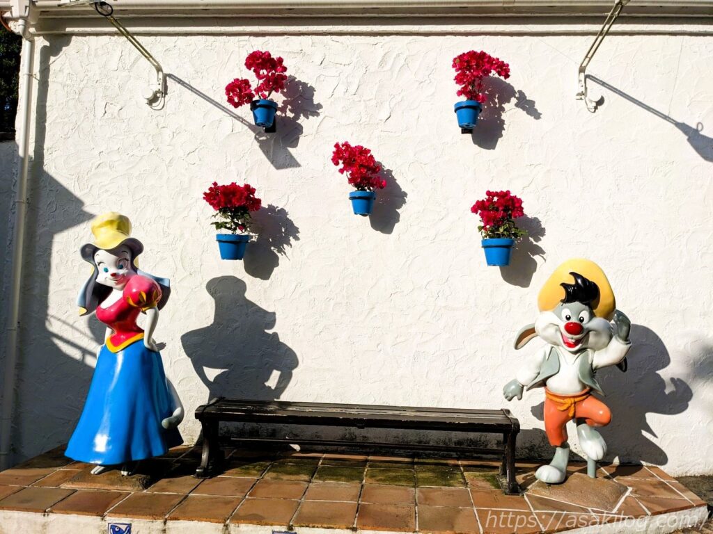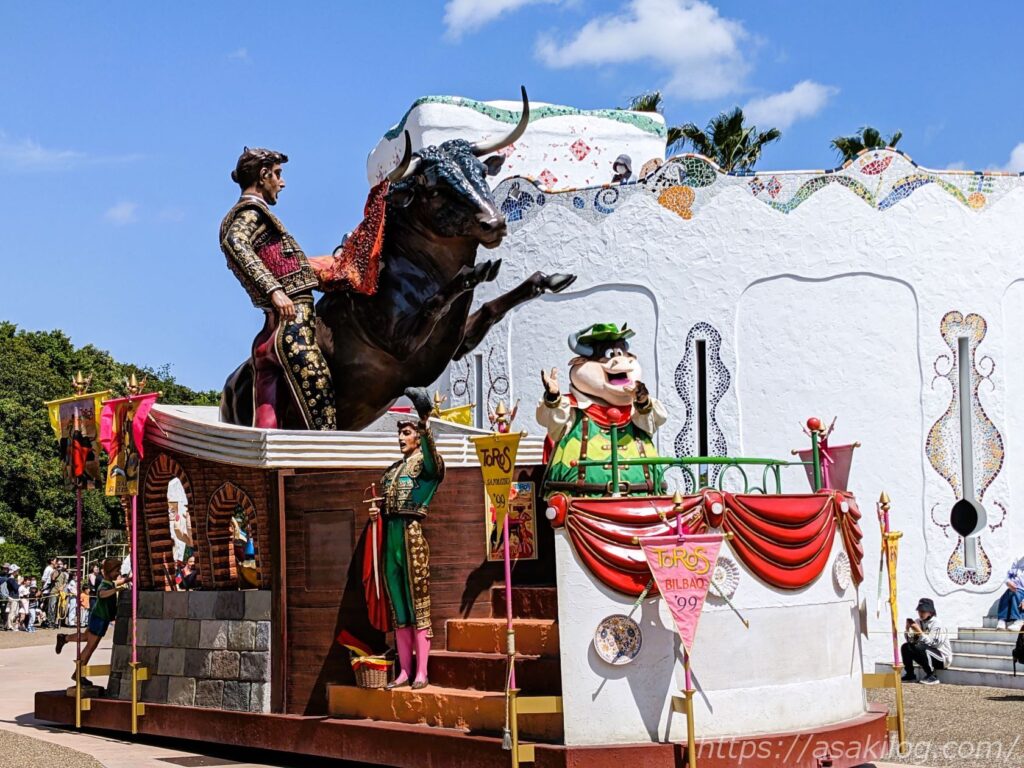 ホテルエントランスにあった、志摩スペイン村のキャラクターにニヤニヤしつつ、パルケエスパーニャの入口に向かって、いざ出陣!
