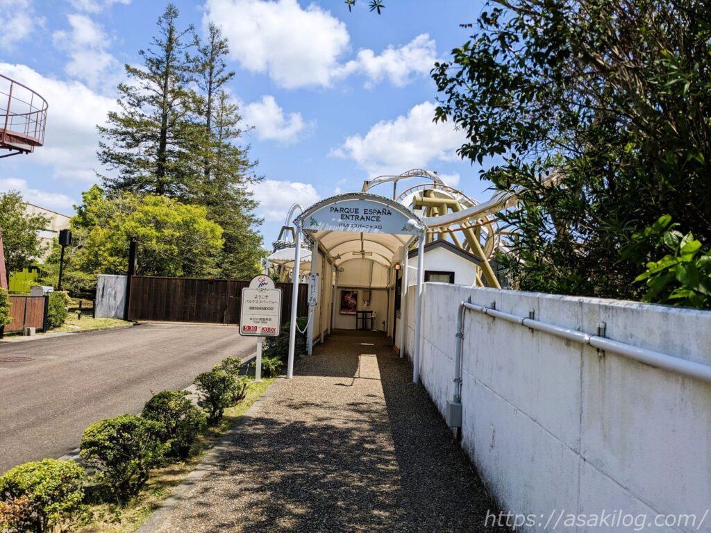 順路に沿って歩くと、あっという間にパルケエスパーニャの入口(ホテル・温泉ゲート)に到着しました。ここで先ほどホテルで購入したチケットを見せて入場します。