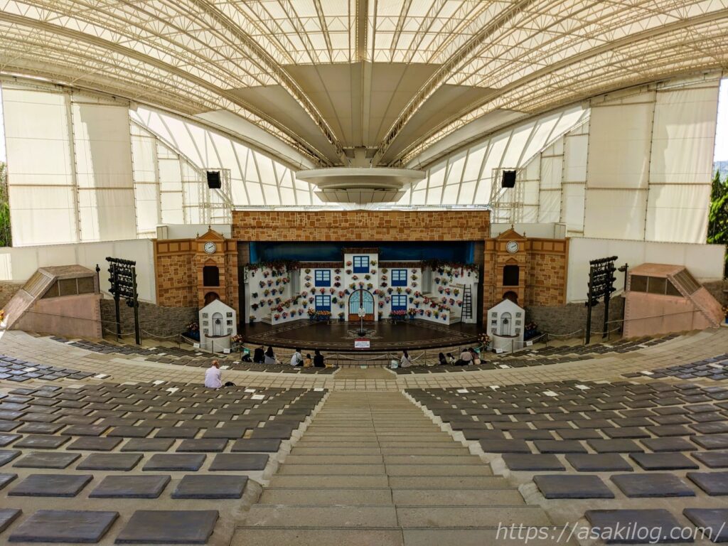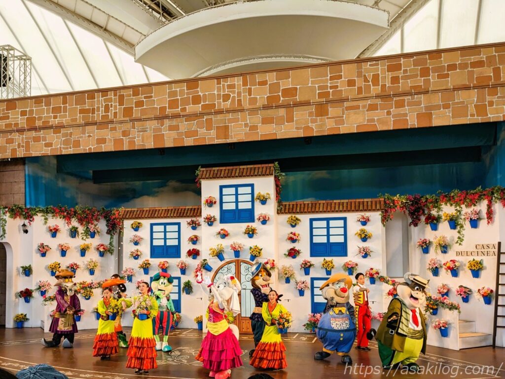 志摩スペイン村・パルケエスパーニャのコロシアムでは、1日に2回、キャラクターミュージカル「パティオ デル カント~ダルシネアの秘密の花園~」を上演しています。私は15:50~の回を楽しむことができました。