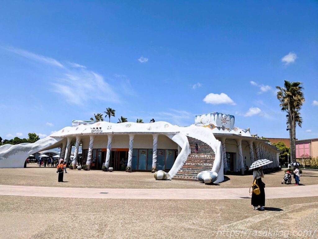 波のような曲線を描く独特のフォルム・不思議な空間。のんびり座れるベンチもあり、ちょっとした休憩にもぴったりです。