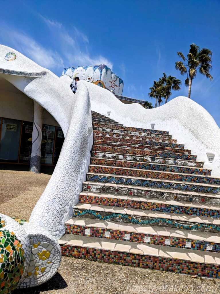 反対側の階段も、カラフルなタイルによる美しい細部の装飾など、ガウディーのアートの独特の世界観を感じられ、フォトジェニックな空間が広がっていました(GWで人が多かったのが残念)。