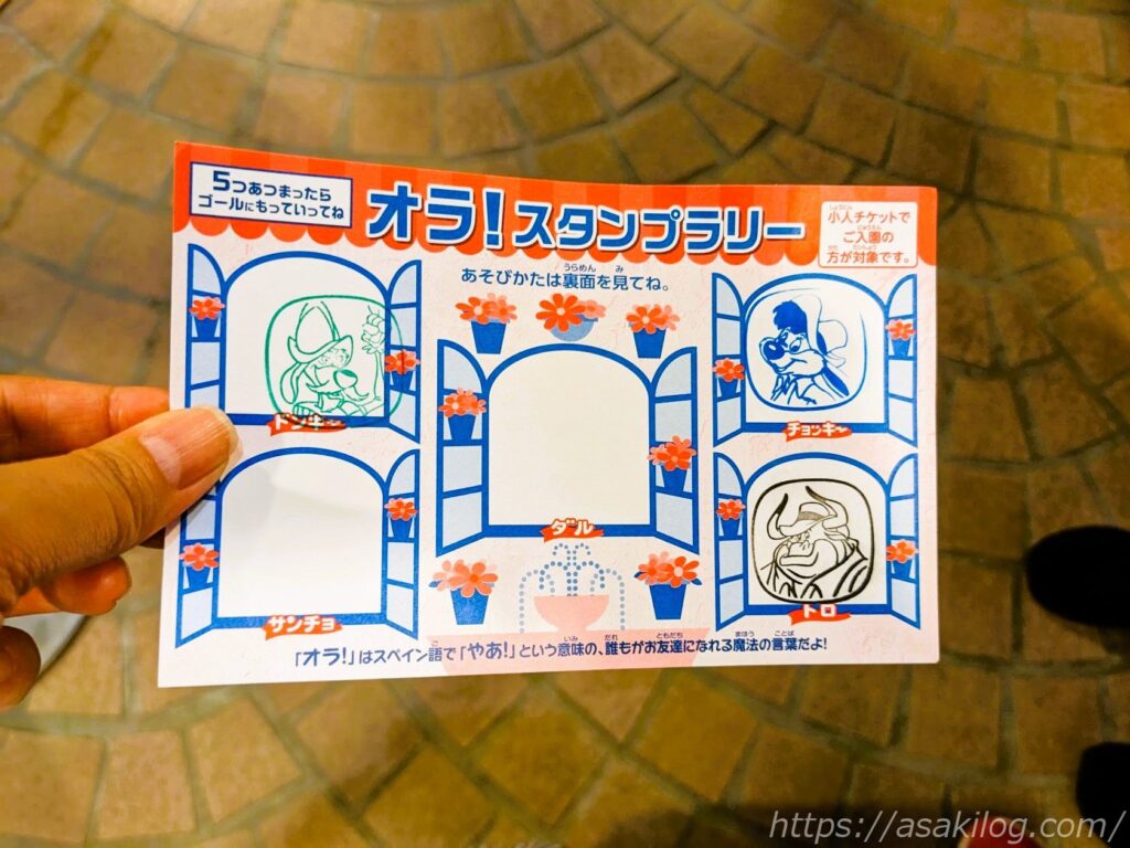 「オラ!缶バッジ」を付けたキャストを見つけて、元気よく「オラ!」と挨拶・スタンプを押してもらい、スタンプが全部集まったらプレゼントをもらえるそう。これは頑張って集めるしかない!(上記写真は入場後しばらくして撮影したため、すでにスタンプが押してありますが、実際には1つも押してないスタンプカードがもらえます)。