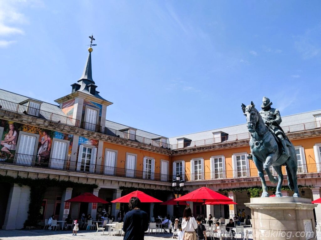 「マヨール広場(プラサ・マヨール)=大広場」の意味を持ち、スペインの都市・町の中心に設けられた公共の場で、今日でも人々の憩いの場所になっているそう。
