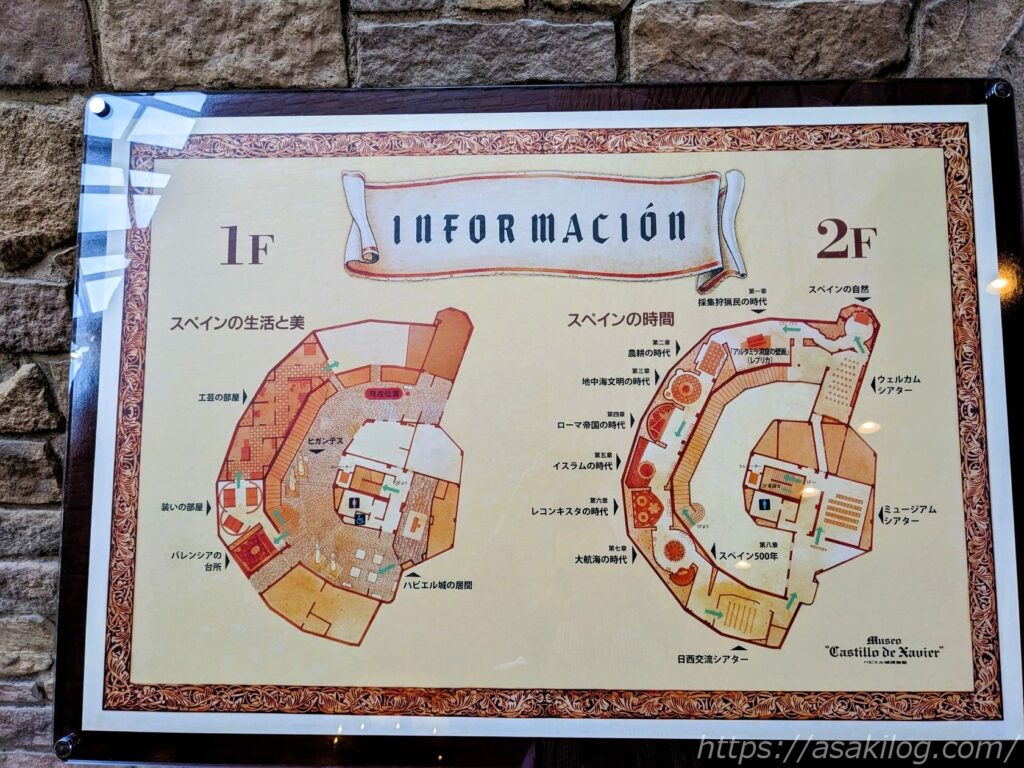 右の写真は館内マップのインフォメーション。1Fの「現在位置」が今いる場所です。
