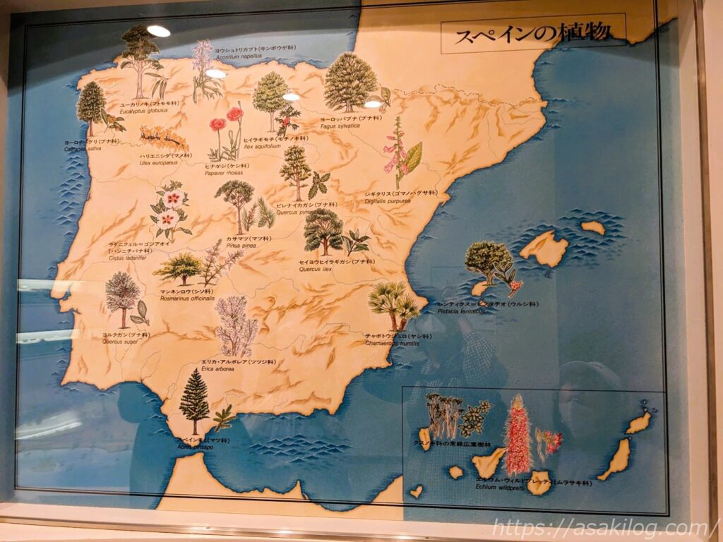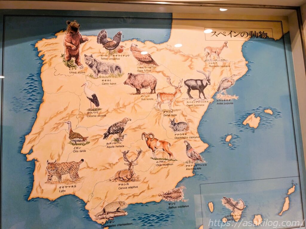 こちらのマップは、スペインの植物とスペインの動物。こうやってみると面白いですね。スペインにもコウノトリやイノシシがいるとは思わなかった!