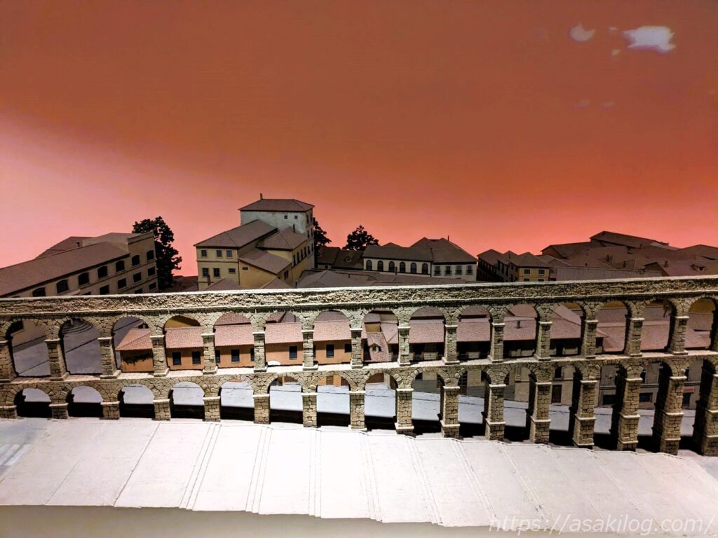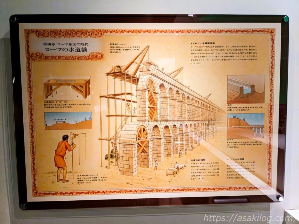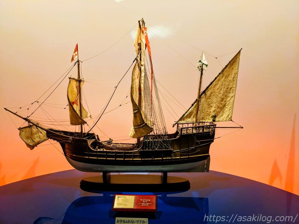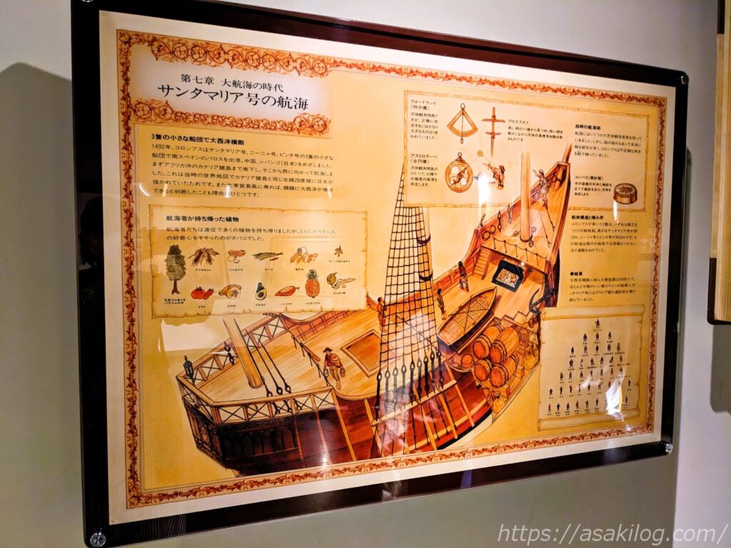 こちらは「ローマの水道橋」と「サンタマリア号の航海」。リアルな模型も展示してあります。