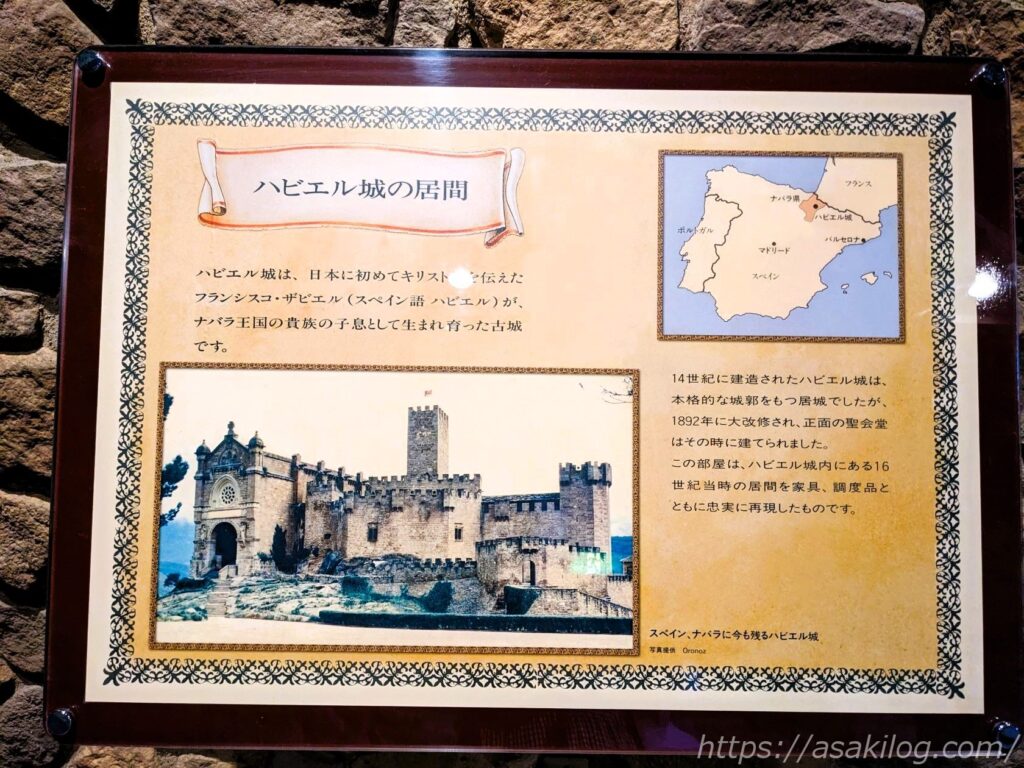 フランシスコ・サビエルが生まれ育った古城・ハビエル城の16世紀当時の家具と調度品を集め、当時の生活を再現した空間です。