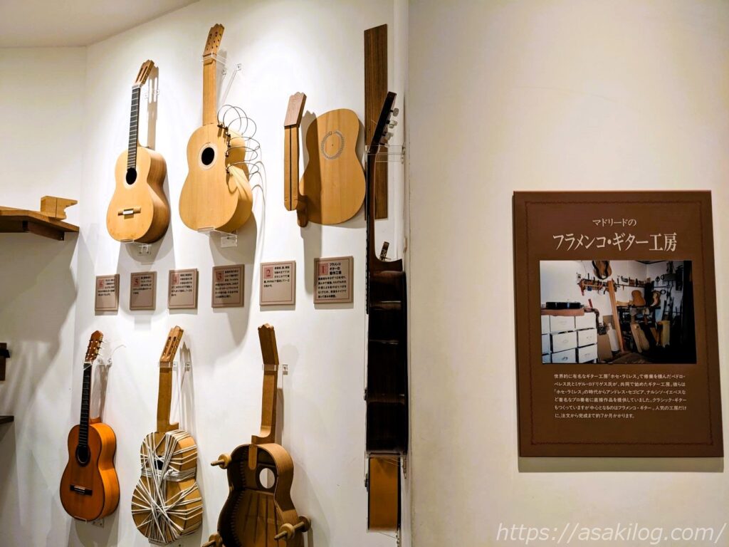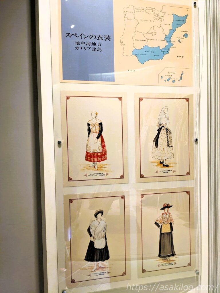 上記の写真は、スペイン(地中海地方・カナリア諸島)の衣装で、どれも可愛い! その奥には、マドリードのフラメンコ・ギター工房の写真も展示してありました。