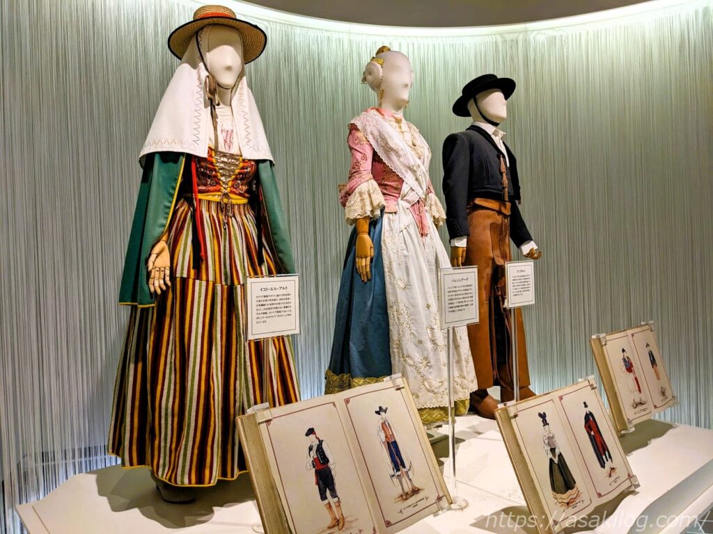 左から、牛追い祭り・セビリアの春祭り・フラメンコショー。それぞれ小さなコーナーですが、日本では知られていないスペイン文化を目にすることができますよ。