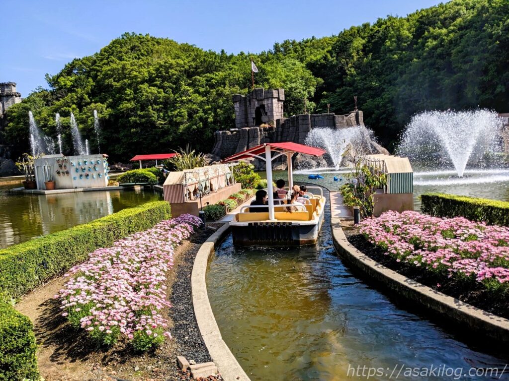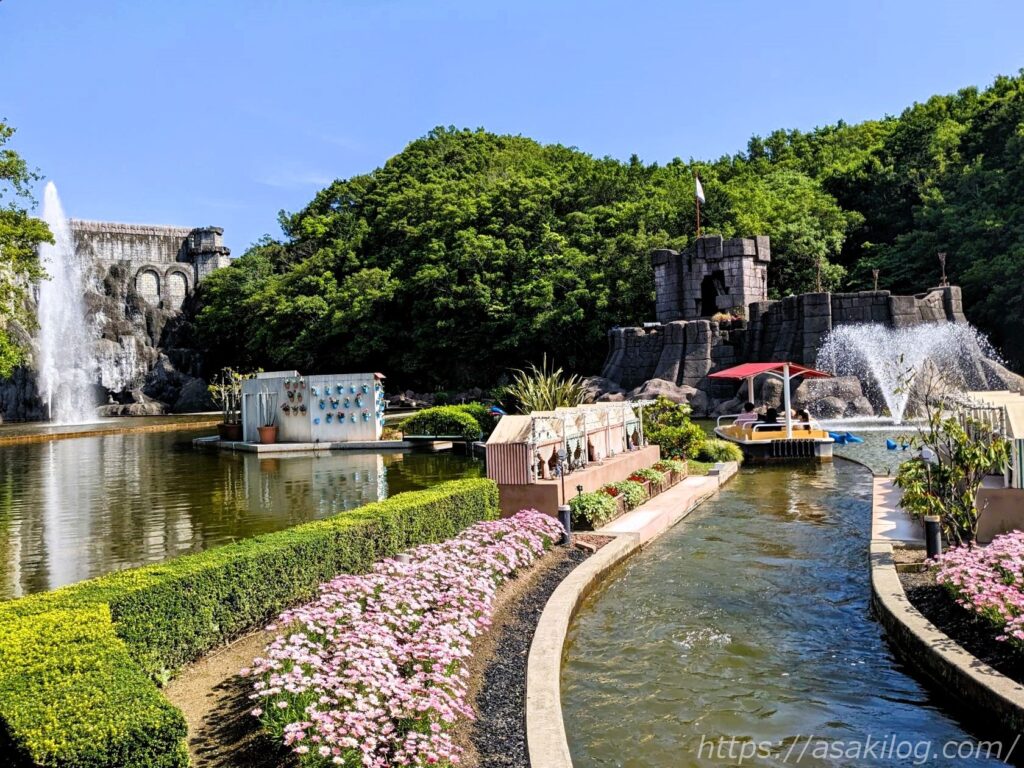 島内には、四季折々の花が咲き誇り、次々と噴水が吹き上げる爽やかな風景が広がっています。