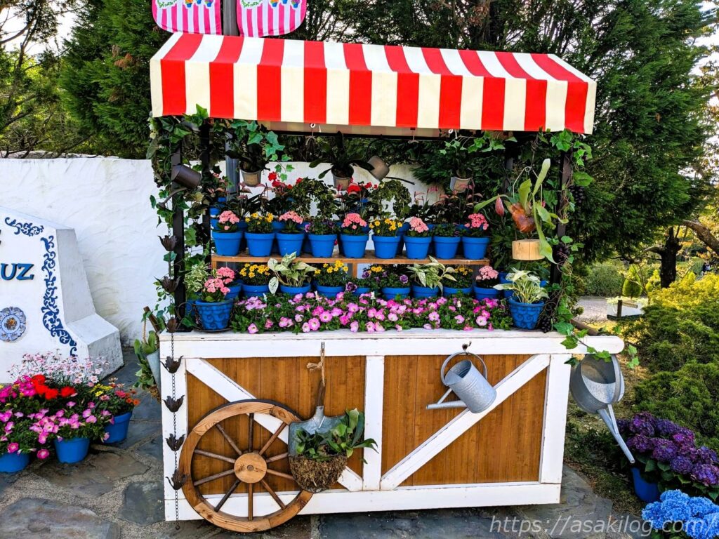 そのお祭りをモチーフに、志摩スペイン村のサンタクルス通りでも「花のパティオ祭り」を開催。また春の訪れをお祝いするイベント「ハッピーイースター」も開催中で、この日は華やかなお祭りムードでにぎわっていました。