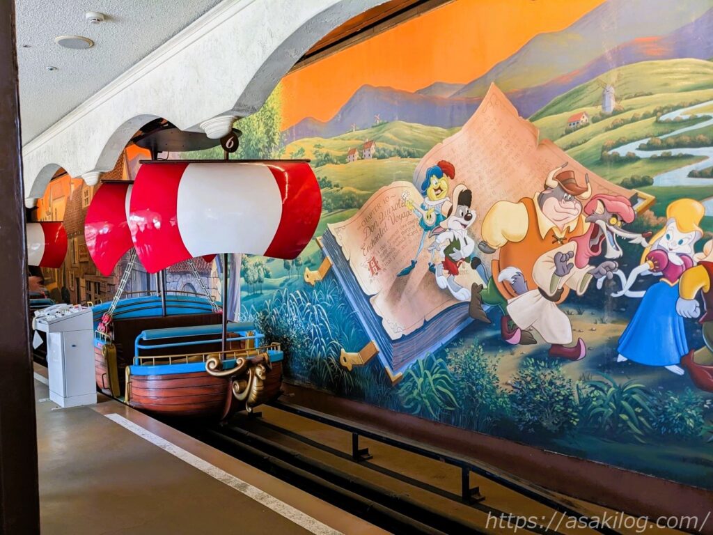 「ドンキホーテ冒険の旅」は、空飛ぶ船に乗ってファンタスティックな世界を旅するアトラクションです。