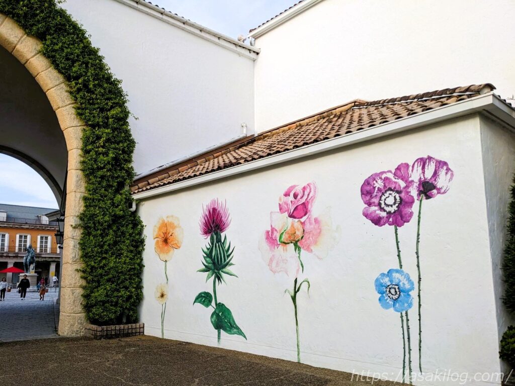こちらはカルメン通りのウォールアート。可愛らしいお花の絵がフォトスポットになっています。