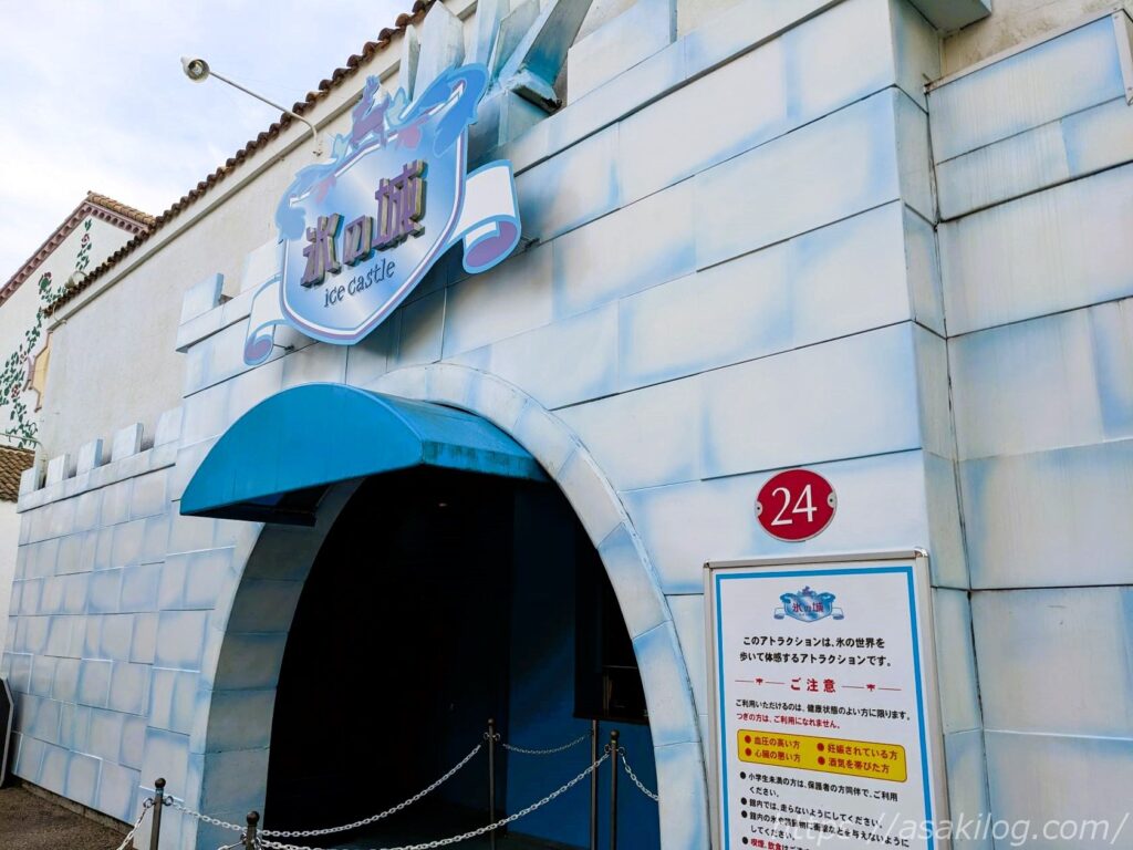 「氷の城」は、氷点下の世界を歩いて体験するアトラクションです。