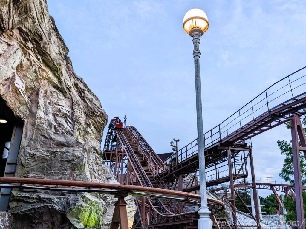 私は東京ディズニーランドで「ビッグサンダーマウンテン」が一番好きなんですが、それに似た感じだったので乗ってみたくて。でも午前中は混雑していたためパス。夕方「待ち時間10分」のタイミングを見計らって一人で乗ってみました!(娘と夫君が別のアトラクションに行ってる間)