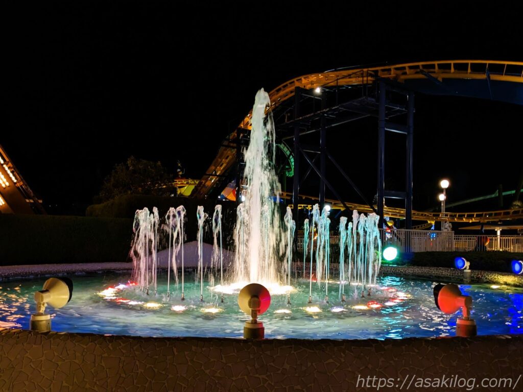 「エスパーニャカーニバル アデランテ」は、GWや夏休みに限り、夜のナイトパレードも上演しています。上演時間は昼のパレードと同様、約25分ほどです。