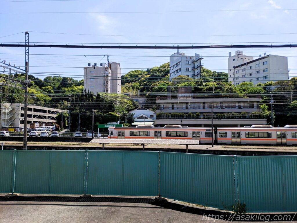 宿にたどり着いたのがお昼の13時頃。お腹がぺこぺこだったので、まずは腹ごしらえランチをすることに。宿から鳥羽駅へ向かうと電車が通り過ぎていきました。