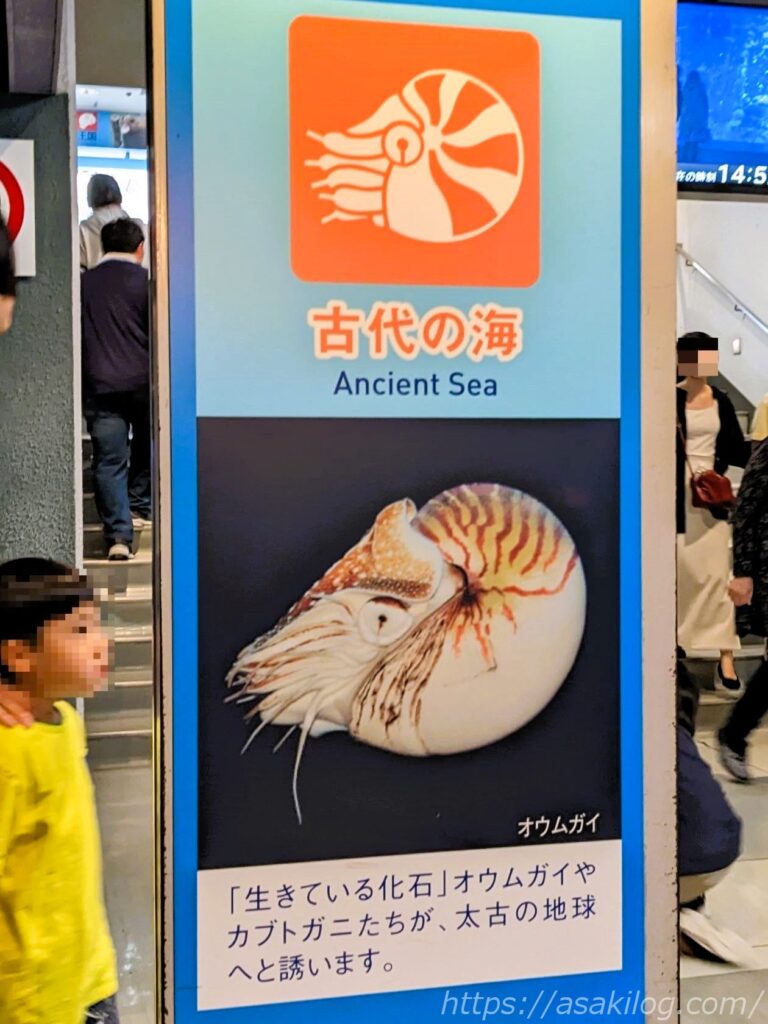 「古代の海(C)」は、生きている化石たちの暮らす世界へタイムスリップできるゾーン。
