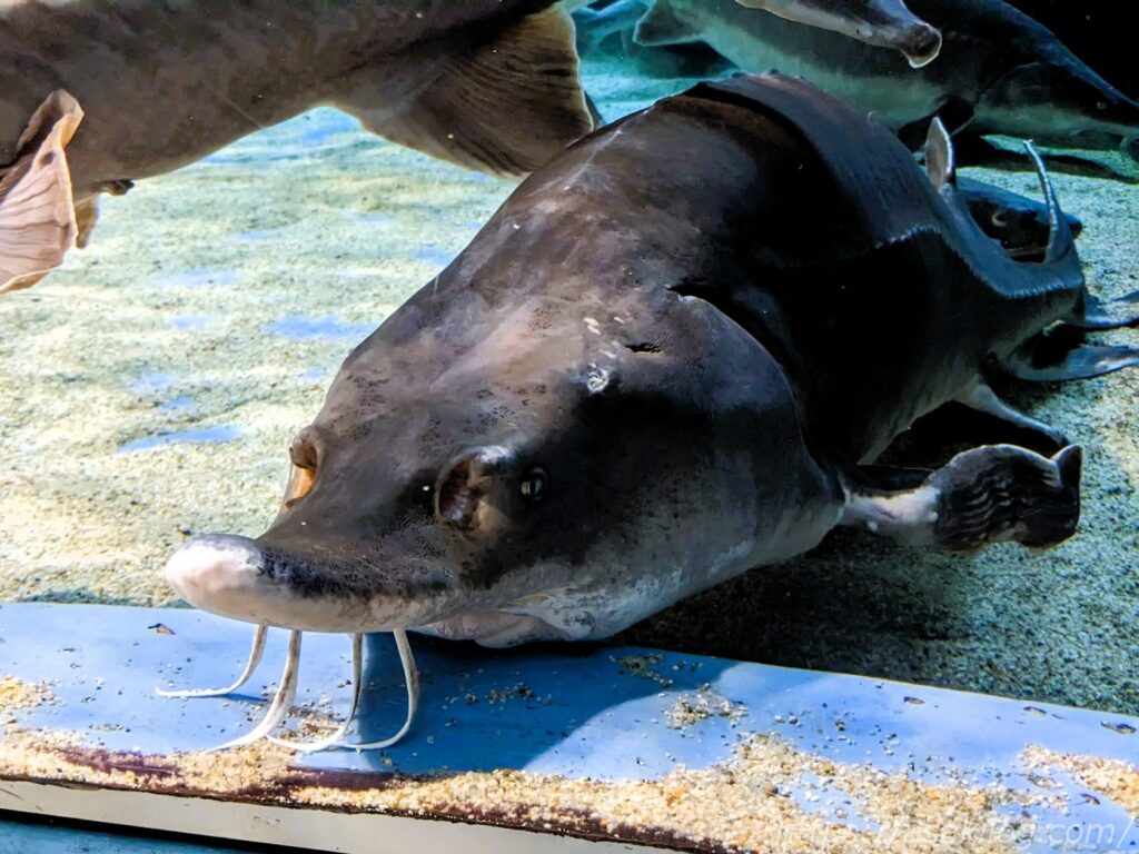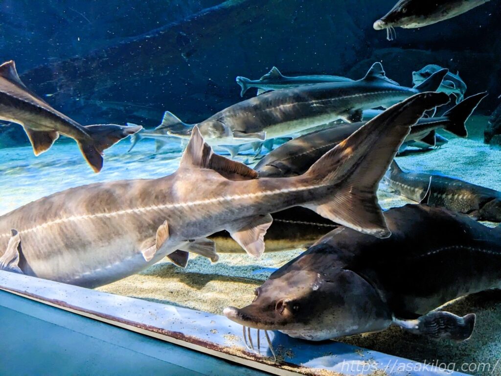 こちらは「チョウザメのなかま」。サメと名付けられてはいますが、原始的な硬骨魚で、卵はなんとあの「キャビア」になるそう!ほほ~っ。