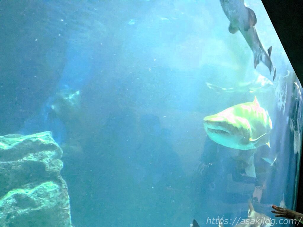 サメの仲間「シロワニ」「ドチザメ」です。シロワニは、尖った歯で獲物を捕まえて丸のみして食べるため、あまり大きな獲物は襲わない・・・ようですが、やっぱり顔が怖いですよね。