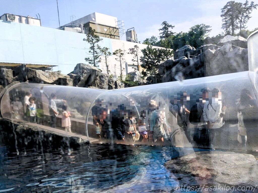 こちらは世界初の水上透明チューブ!ここから海獣たちの生活を間近に観ることができます。