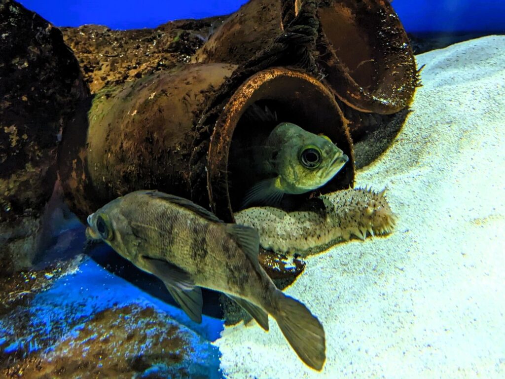 水の透明度が悪かったため綺麗な写真は撮れませんでしたが、もぐもぐお食事したり、ゆったりと泳ぐ姿に癒されました。