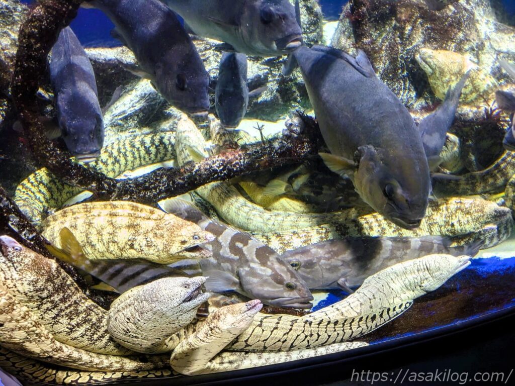 こちらは伊勢湾・瀬戸内海に多く生息するスメナリ。成長しても1.8mほどにしかならないそう。奥のスメナリプールでは上から観察することもできました。