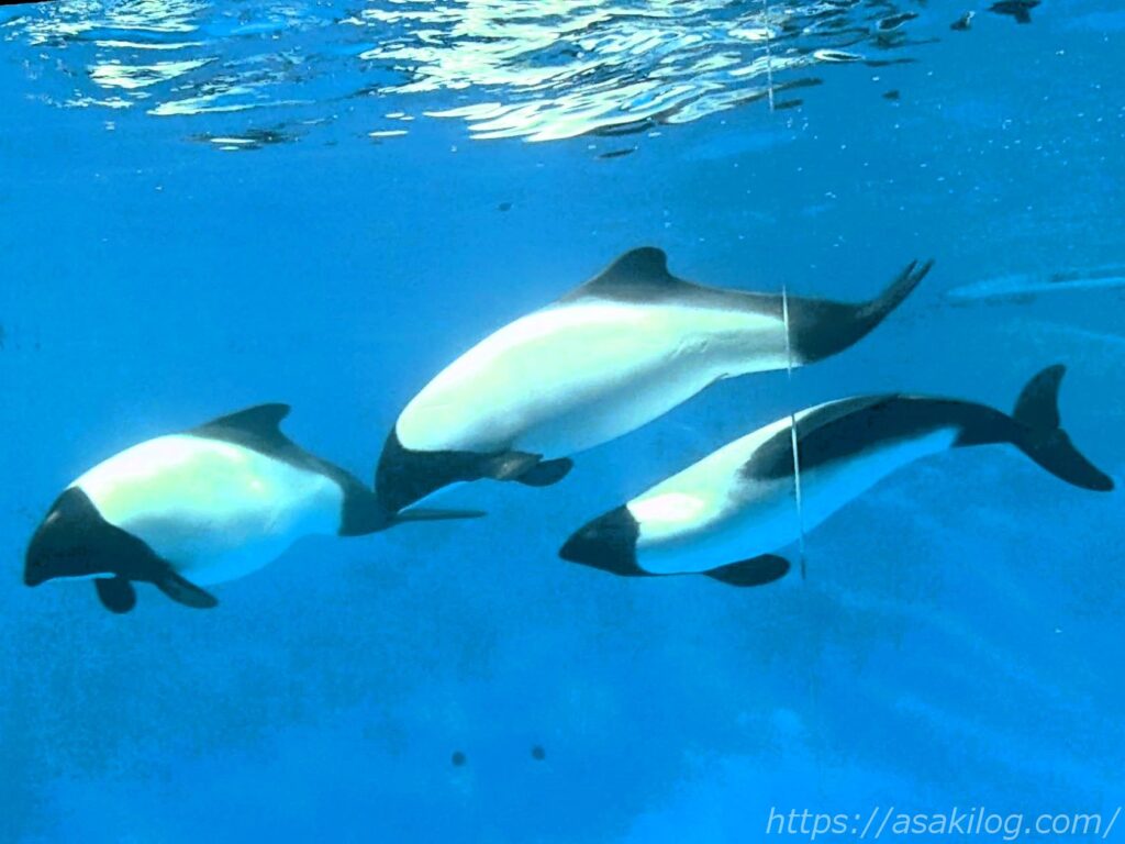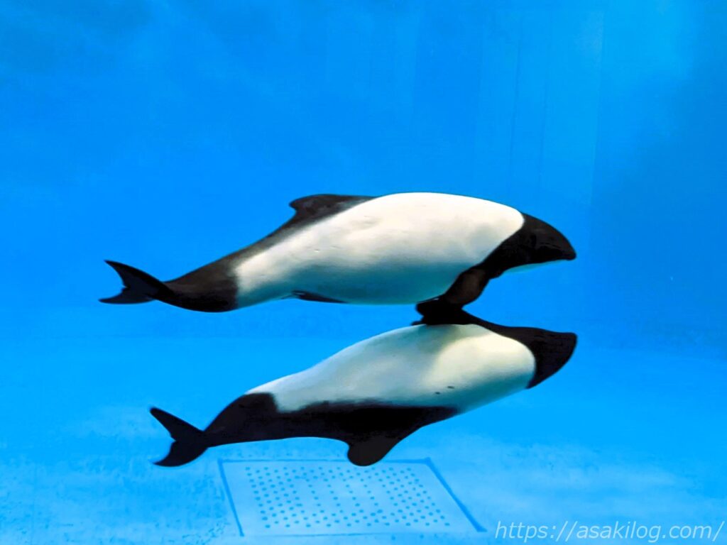 そしてイロワケイルカは、南米大陸の最南端マゼラン海峡とその周辺に住む小型のイルカ。黒と白の模様から「パンダイルカ」の愛称もあるそう!仲良く並んで泳ぐ姿が印象的でした。