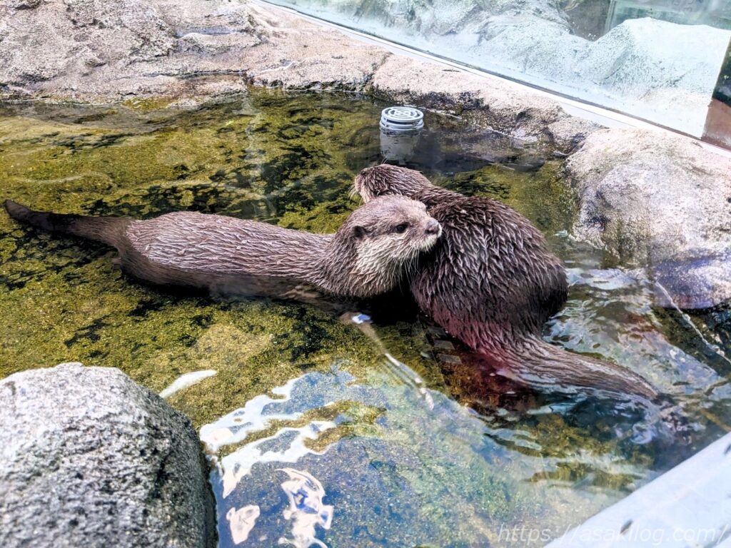 そしてコツメカワウソの愛くるしい姿に胸キュンです。鳥羽水族館では繁殖目的もかねて雄雌のペアで飼育しているそうなので、一緒に昼寝しているのはカップルかも?