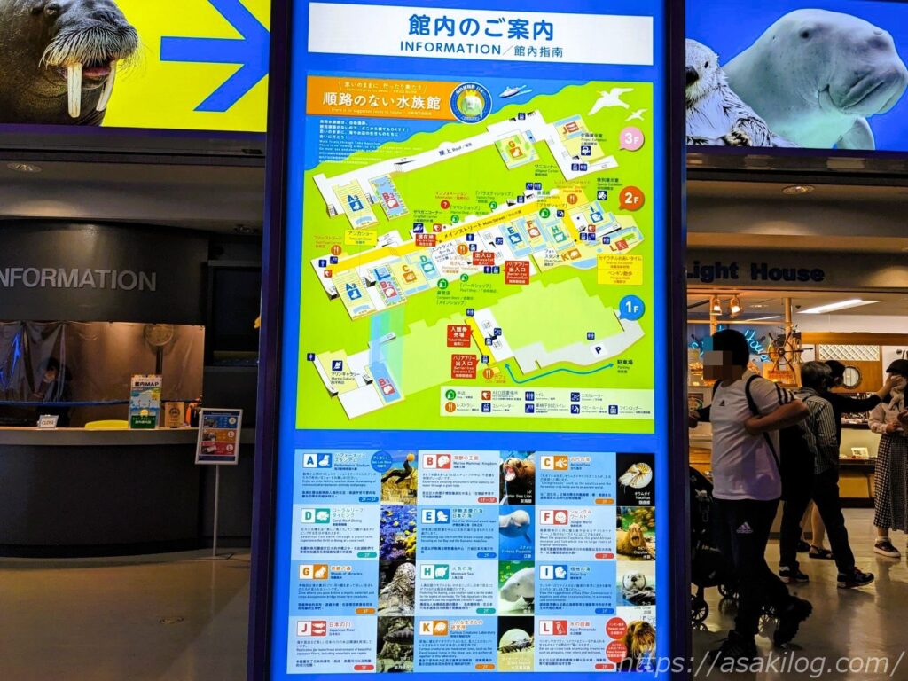 こちらが鳥羽水族館の館内マップ。鳥羽水族館は「順路のない水族館」なので、好きなルートで周ることができます。