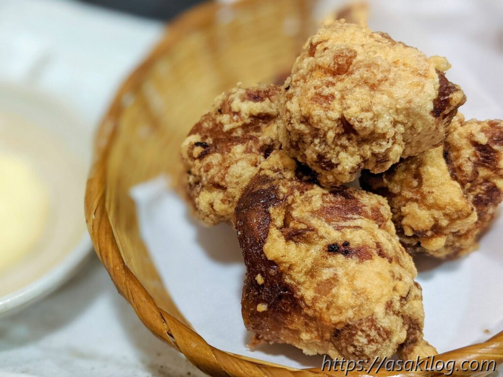 名古屋といえば味噌だよね?ということで「味噌キューリ」と「みそ串かつ」、娘のリクエストで「鶏のからあげ」「フライドポテト」も。みそ串カツはなかなか濃厚で美味しかった。