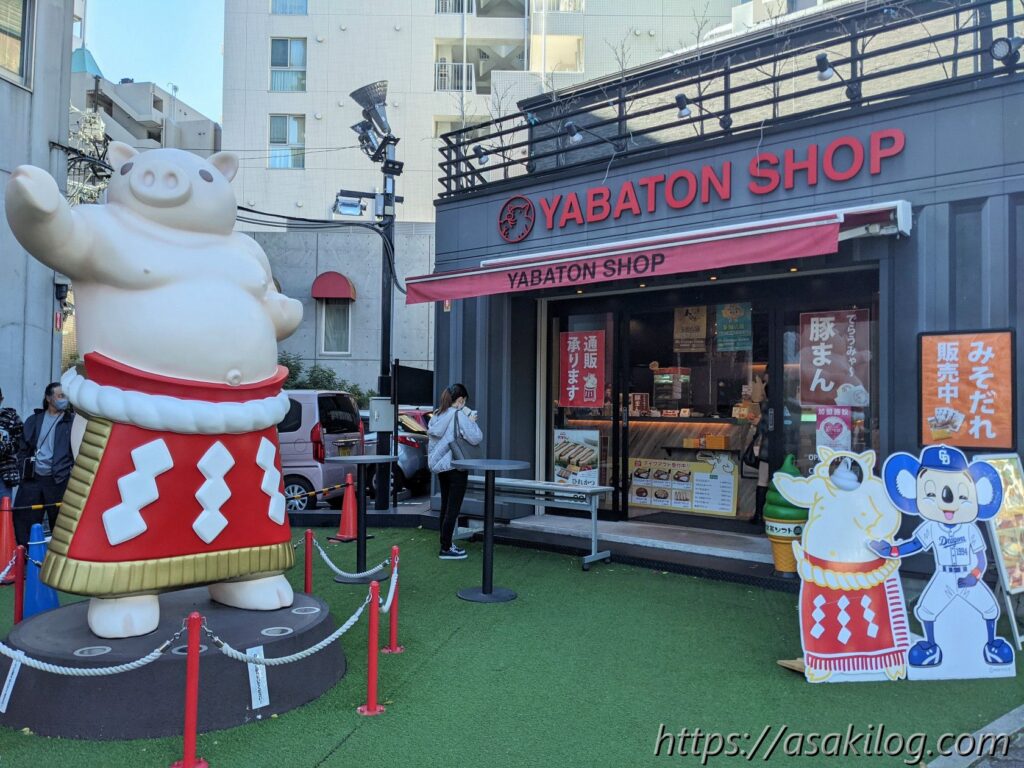 名古屋滞在二日目の昼は、夫君おすすめの「矢場とん」へ。ここは名古屋名物みそかつが有名なんだそう。お店の周りをぐるりと並んでいる最中、暇だったのでマスコットキャラクター?の後ろ姿を撮影。すぐ近くにはYABATON SHOPもありました。