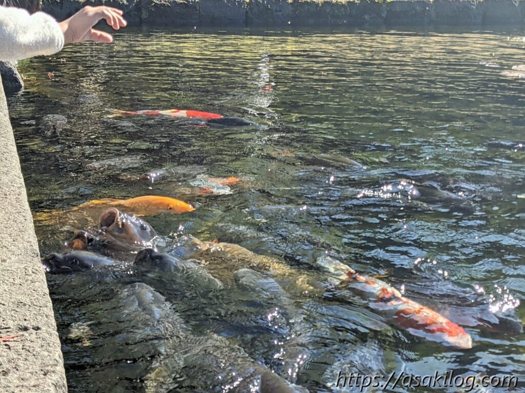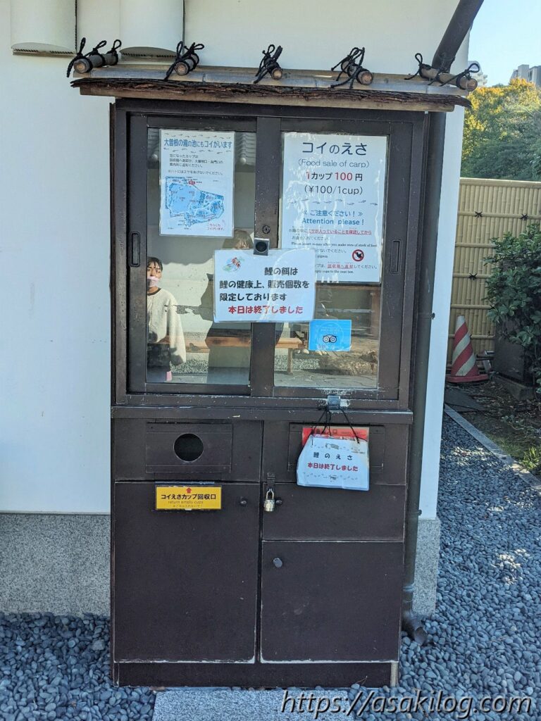 入口で入園料を支払い、入園券・パンフレットをもらって、いざ中へ! 入ってすぐ左手に「コイのえさ」コーナーがありましたが、残念ながら本日は終了。朝早くなら買えるのかな?