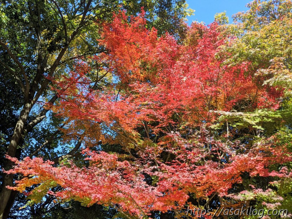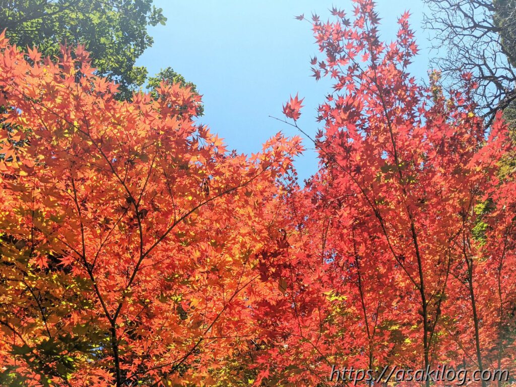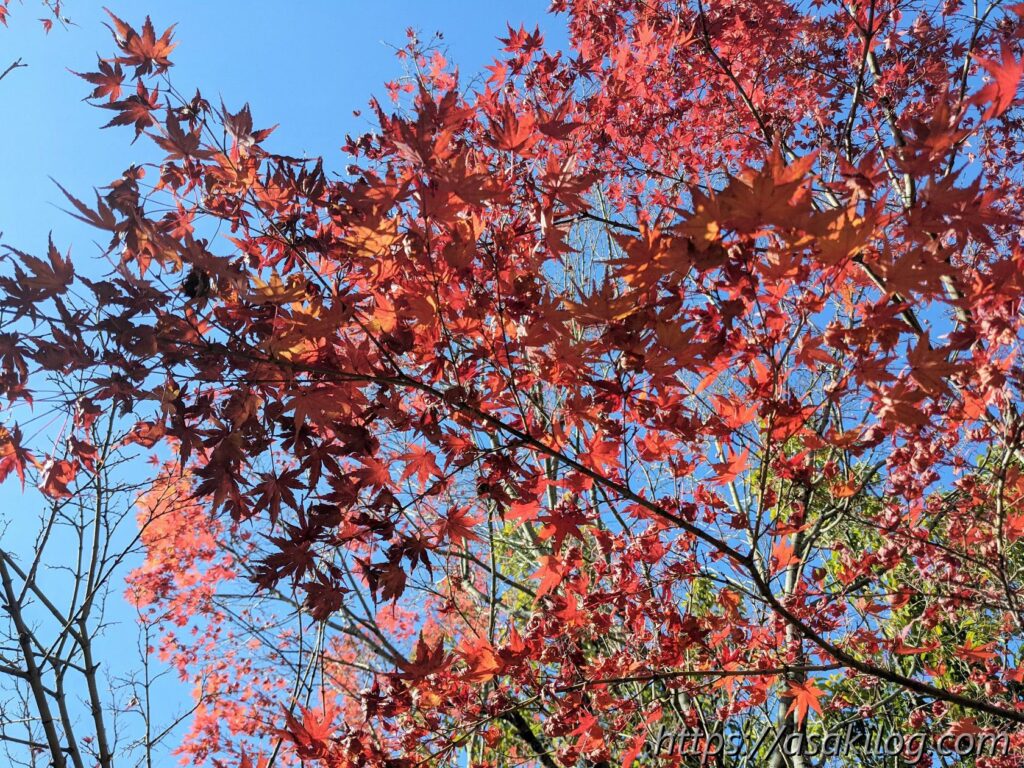 この広場周辺の紅葉は素晴らしかった。今写真を見直しても、真っ赤な葉が眩しいですね。