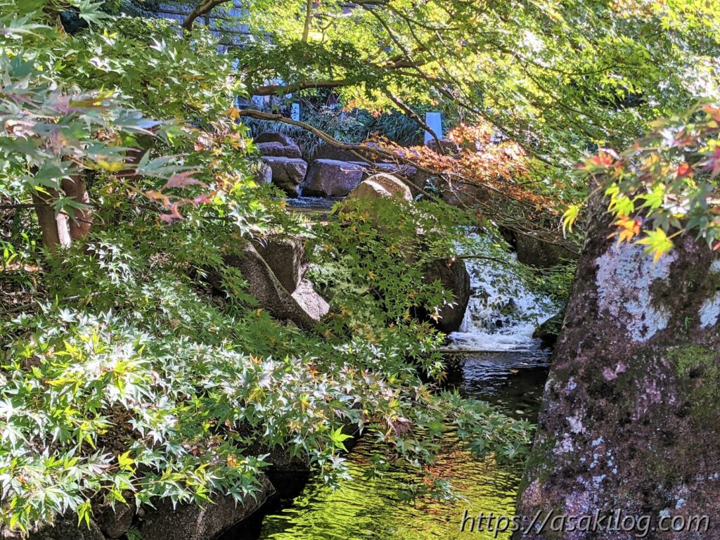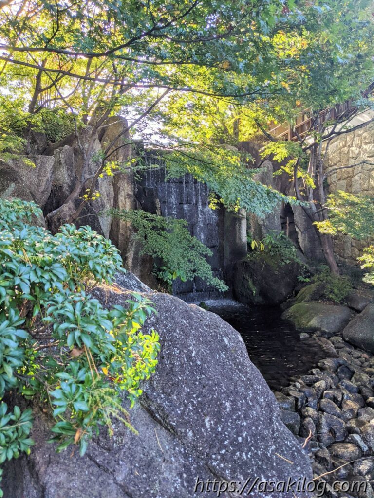 観仙楼の左側には「龍門の瀧(りゅうもんのたき)」があります。なんでも鯉が滝を登り切って龍になったという登龍伝説に基づく滝なんだそう。私が立ち寄った時は静かで、滝の部分がよく見えませんでした。