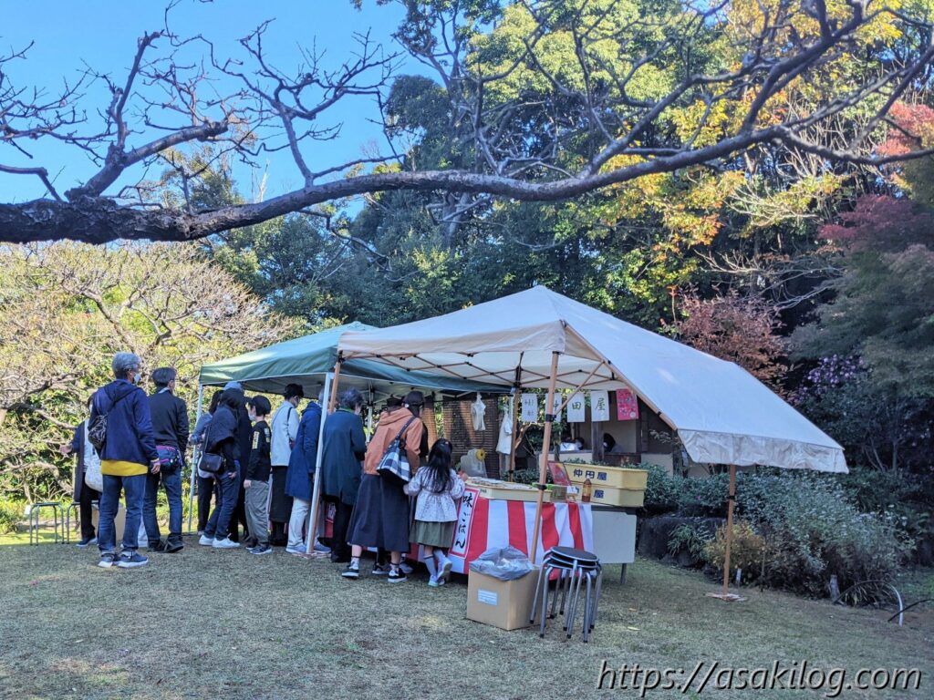 大曽根の瀧を過ぎると「四睡庵(しすいあん)」という休み処がポツリと建っています。その後ろの広場には、何やらお店が出店。お惣菜やおこわっぽいものを販売していました。ソフトクリームとかあれば食べたかったんやけど、残念。