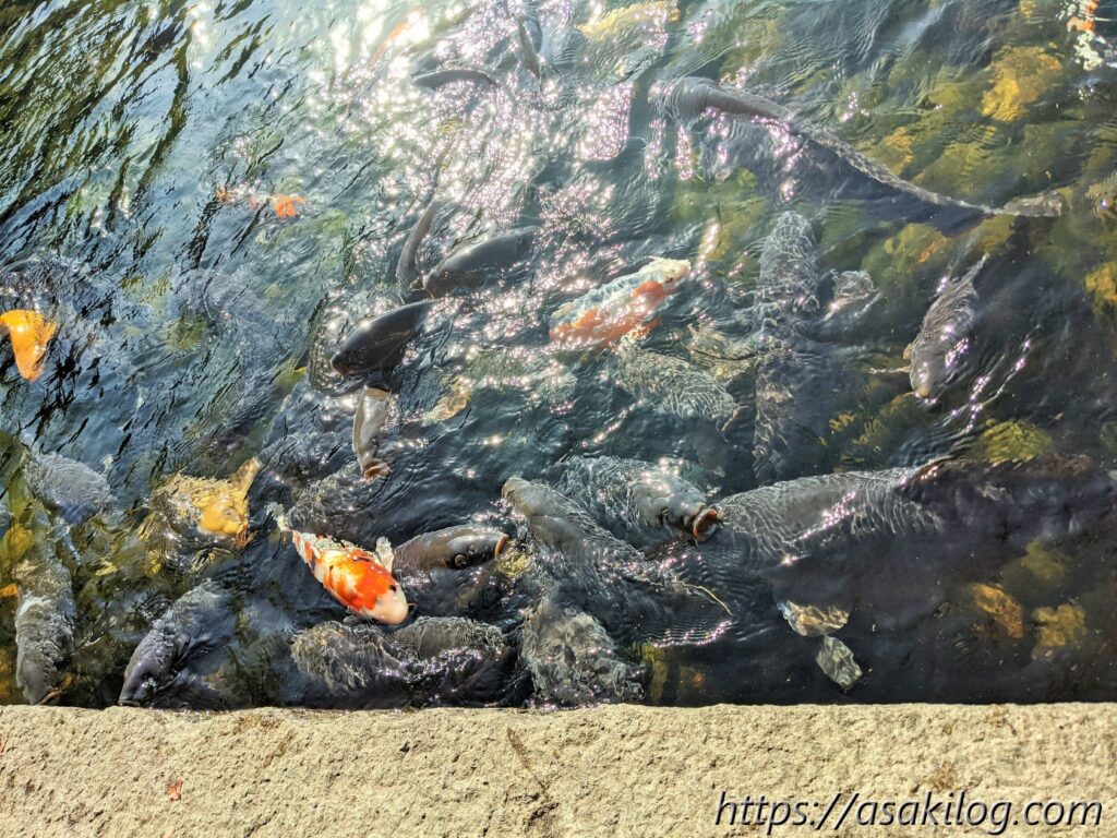 龍仙湖には鯉がたくさん泳いでて、エサヤリしている子どもの前に群がっていました。鯉の口がパカーン!と開いているのがすごい(娘とエサヤリしたかった~)。