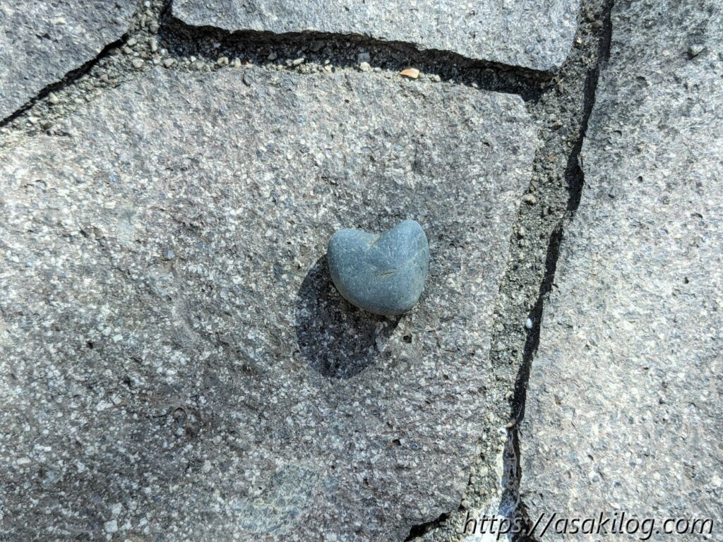写真は、ひと休みで座ってたら見つけたハート型の石。なんいいことありそう!