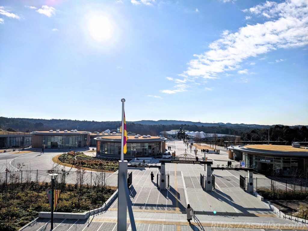 「愛・地球博記念公園駅」を出ると、ジブリパーク方面を一望できる!この景色がお出迎え。とても良いお天気なのもラッキー。