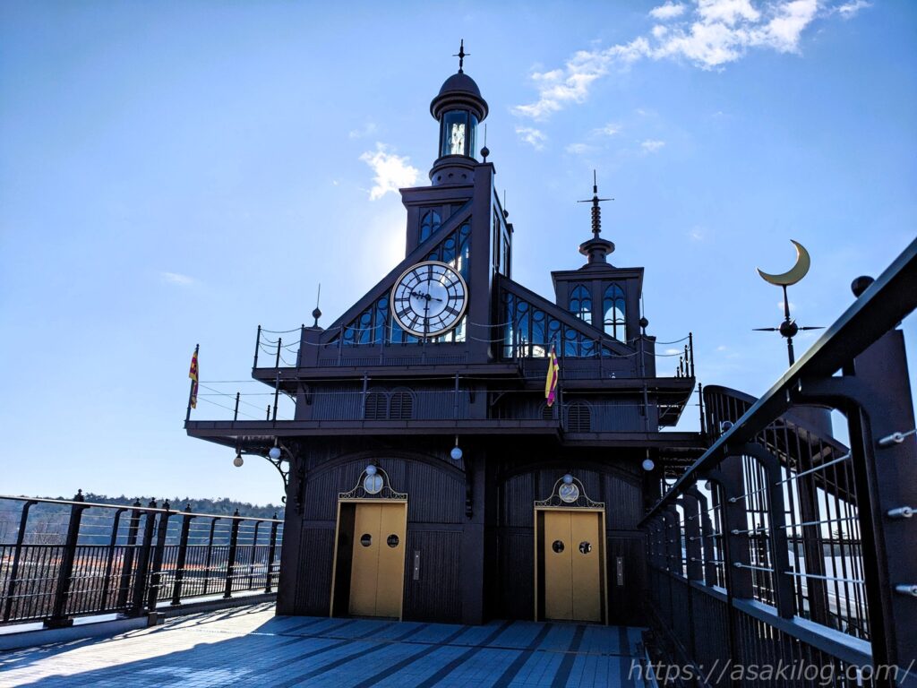 こちら「エレベーター塔」は、もともとは高低差のある公園内の施設として2007年に建設されたもの。「天空の城ラピュタ」「ハウルの動く城」の世界を彷彿とさせる19世紀末の空想科学をイメージしたデザインに改修されています。
