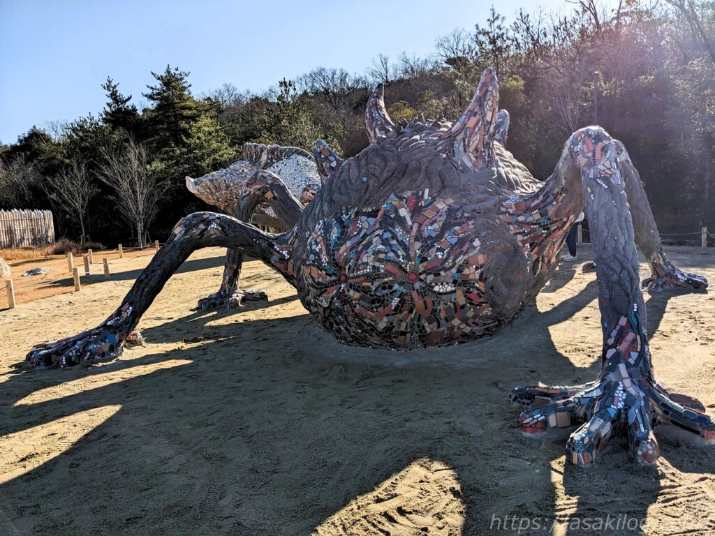 入ってすぐに見えたのが「乙事主」「タタリ神」の2つのオブジェ。どちらも大きくて迫力あり!乙事主は滑り台になっています。
