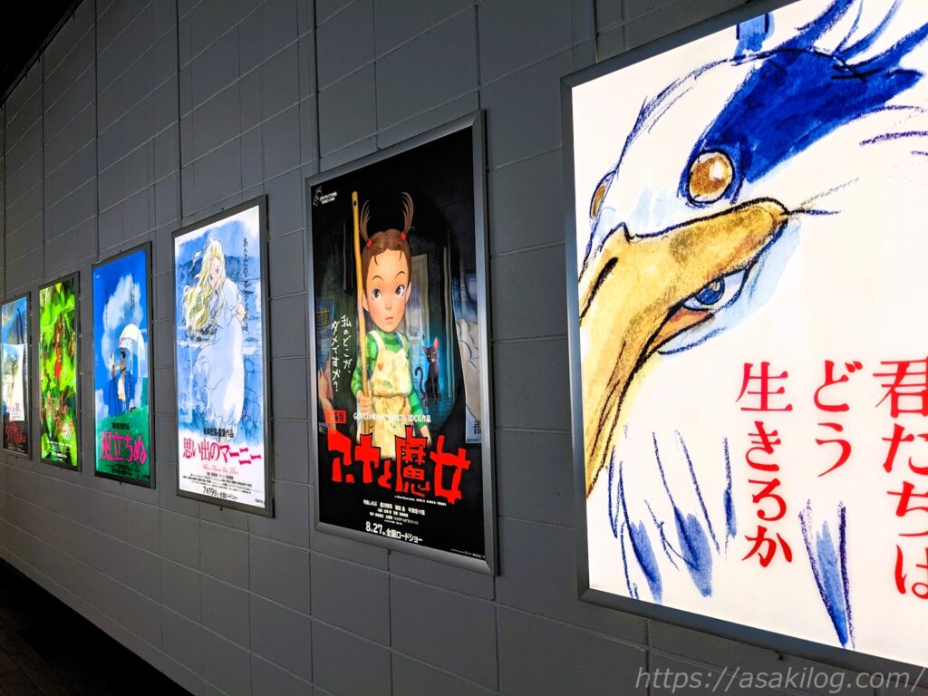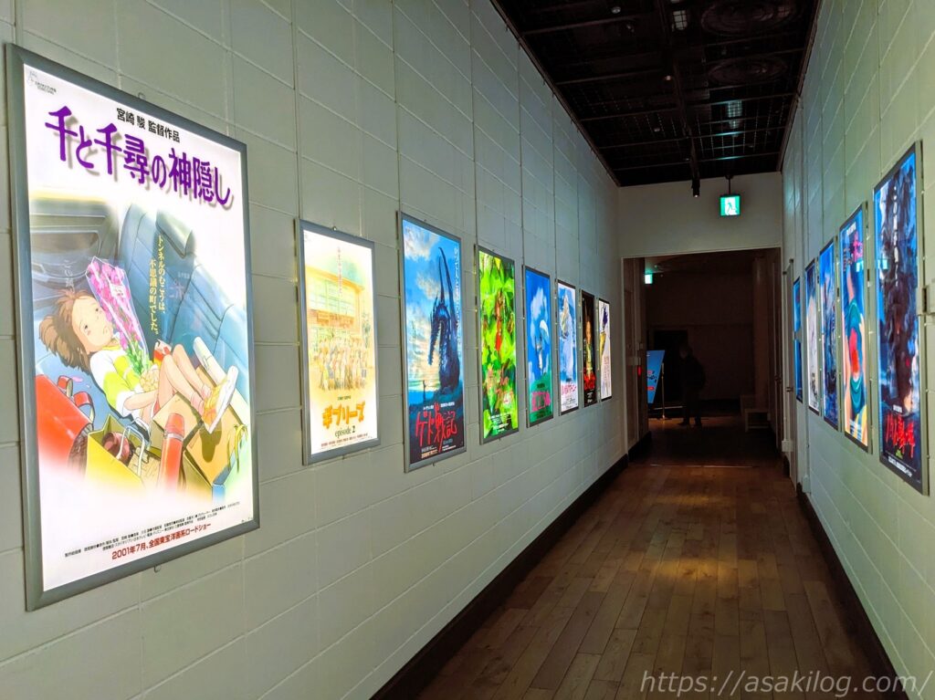 まずはこれまでのスタジオジブリ作品のポスターをさかのぼる通路があります。