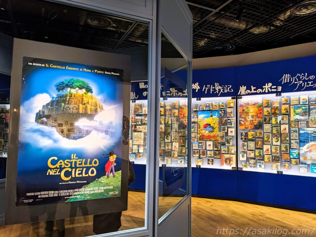 ジブリの大倉庫入場時にもらったチケットの裏に「映像展示室内での写真、動画撮影はご遠慮下さい。」とあったため、展示室内部の写真は撮影していません。