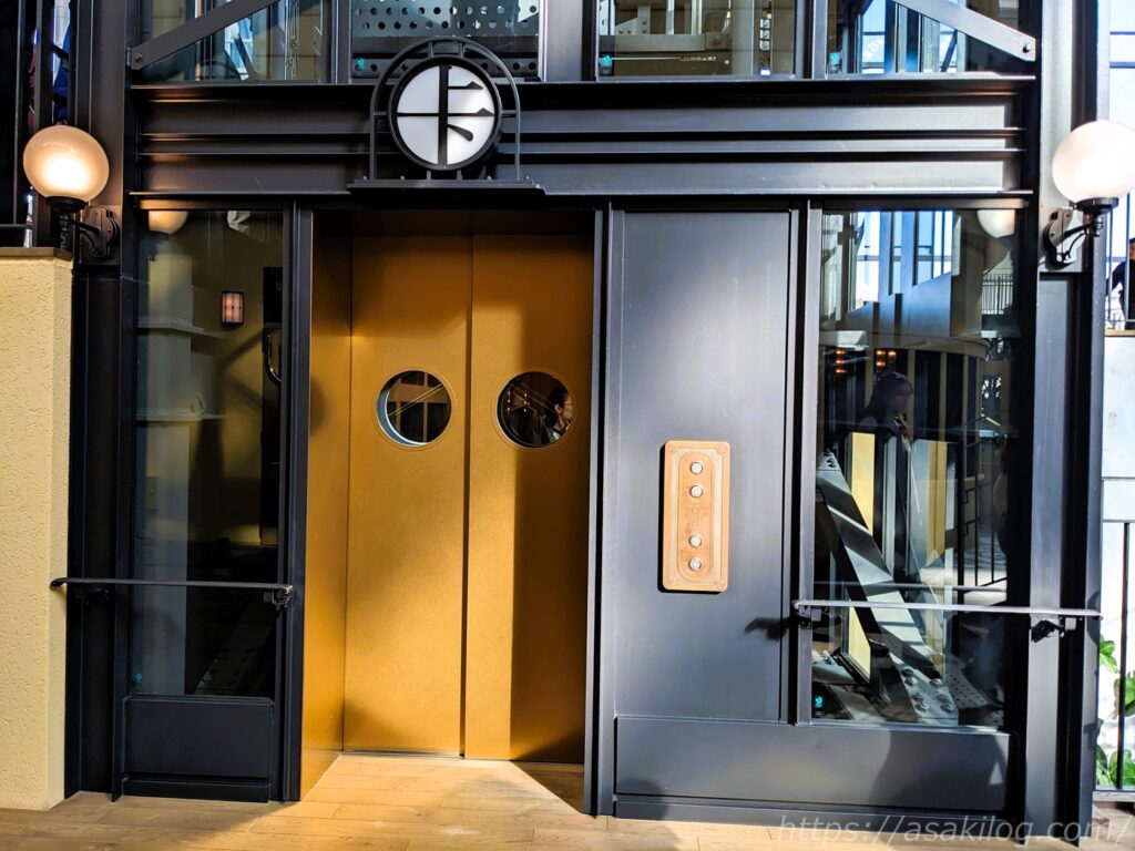 「にせの館長室」周辺には、ほかにも「千と千尋の神隠し」をモチーフとしたスポットがあります。左の写真は「にせの館長室」の裏手・出窓下に張り付いた式神=ハクを追いかけた紙の鳥ですね。そして右の写真は、油屋のエレベーターを再現し、1F~中2F~2Fを繋いでいました。