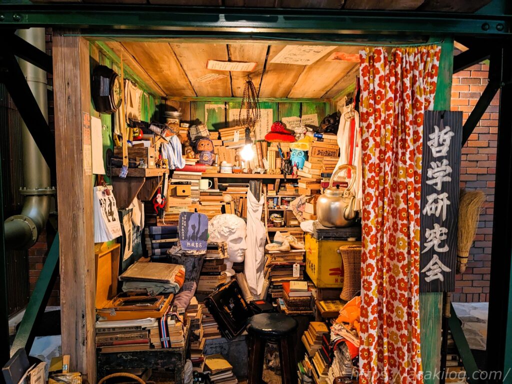 こちらは階段下の小さなスペースにひっそりとあった「哲学研究会部屋」。スタジオジブリ作品「コクリコ坂から」に登場する、文化部の部室が集まった部屋「カルチェラタン」の哲学研究会部室を表現しているそう。