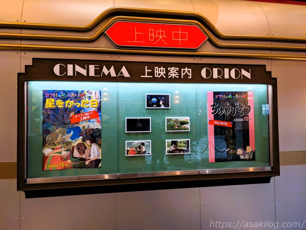 「映像展示室オリヲン座」は、座席数約170席の映像展示室。三鷹の森ジブリ美術館だけで上映されてきたスタジオジブリ制作の短編アニメーション全10作品を順番に上映しています。
