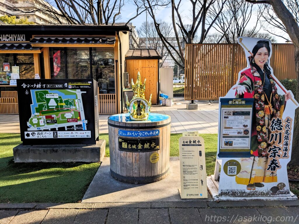 地下鉄名城線 「名古屋城」駅を出るとすぐに、「NAGOYA」のモニュメントや、「金シャチ横丁」の入口があります。